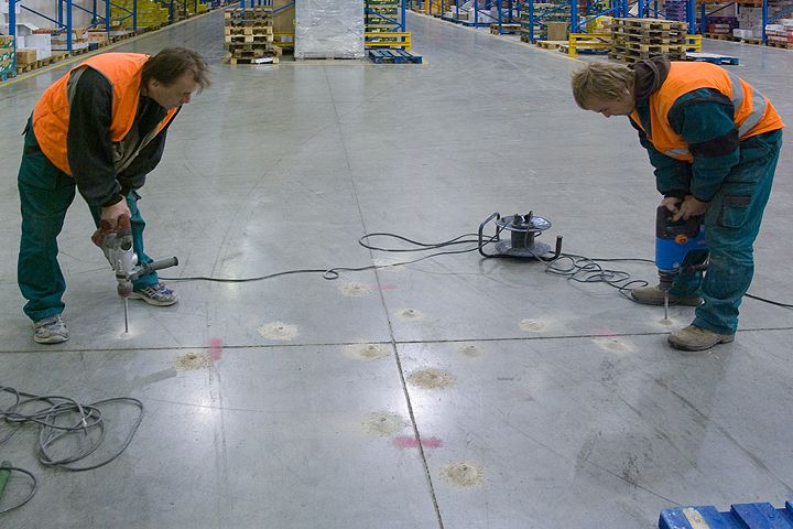 Během listopadu a prosince proběhnou v několika etapách opravy provozem poškozené betonové podlahy v rozsáhlém centrálním skladu společnosti Interspar v Praze, Horních Počernicích. Kromě odšípaných hran, oprav prasklin a lokálních výtluků proběhne na řadě míst i stabilizace betonových desek podlahy speciálními expanzními pěnami.